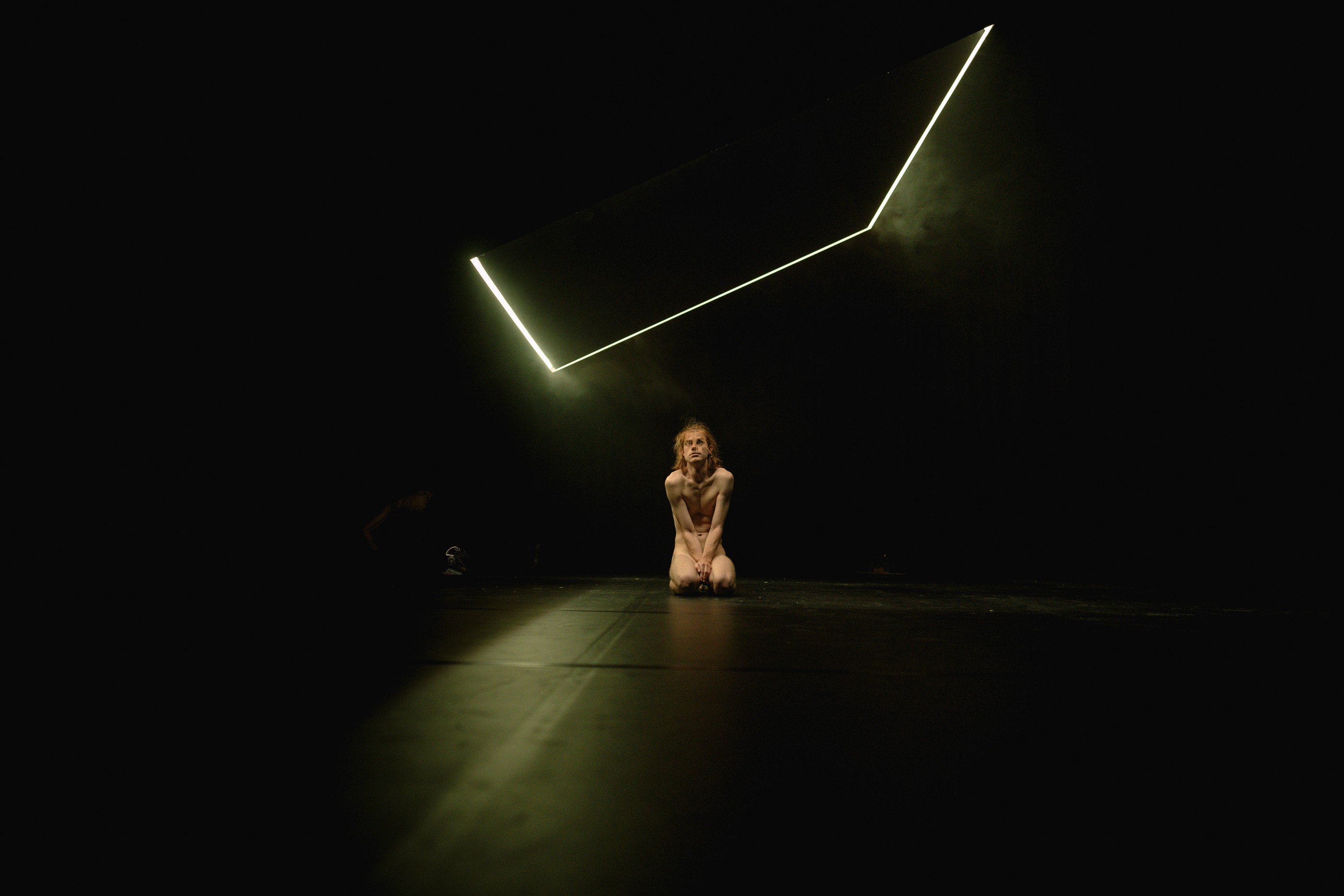 TRANSIT - fasten your seatbelt, there’s no estimated time of arrival is a surreal physical performance about being stuck ‘in between’. The feeling of an eternal transit zone at an airport where no plane ever arrives or departs. As you are waiting for help, with a suitcase in your hand, your body starts to shake as if there is an earthquake inside you. There is no one to help you. You’re on your own. Advice? Enjoy it, because there is still a long way to go.